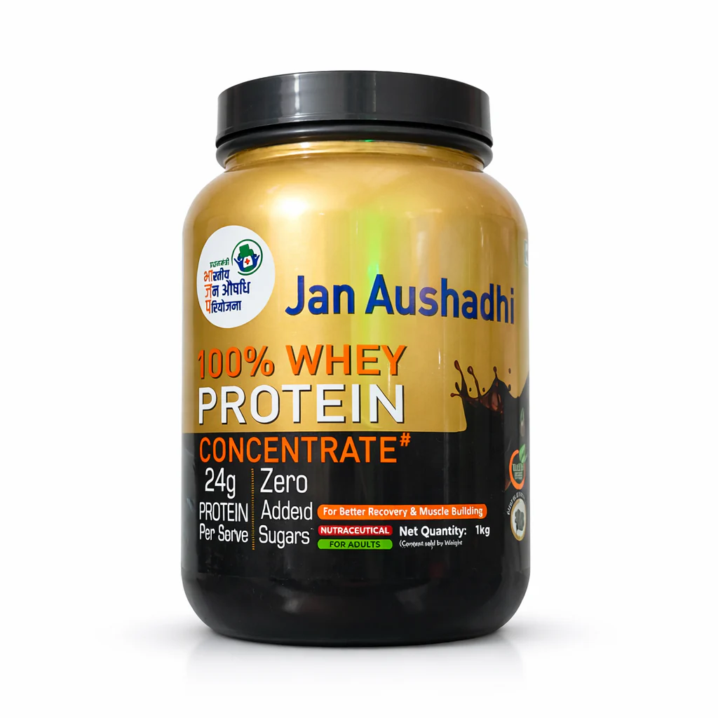 The whey protein is typically available at Jan Aushadhi Kendras.